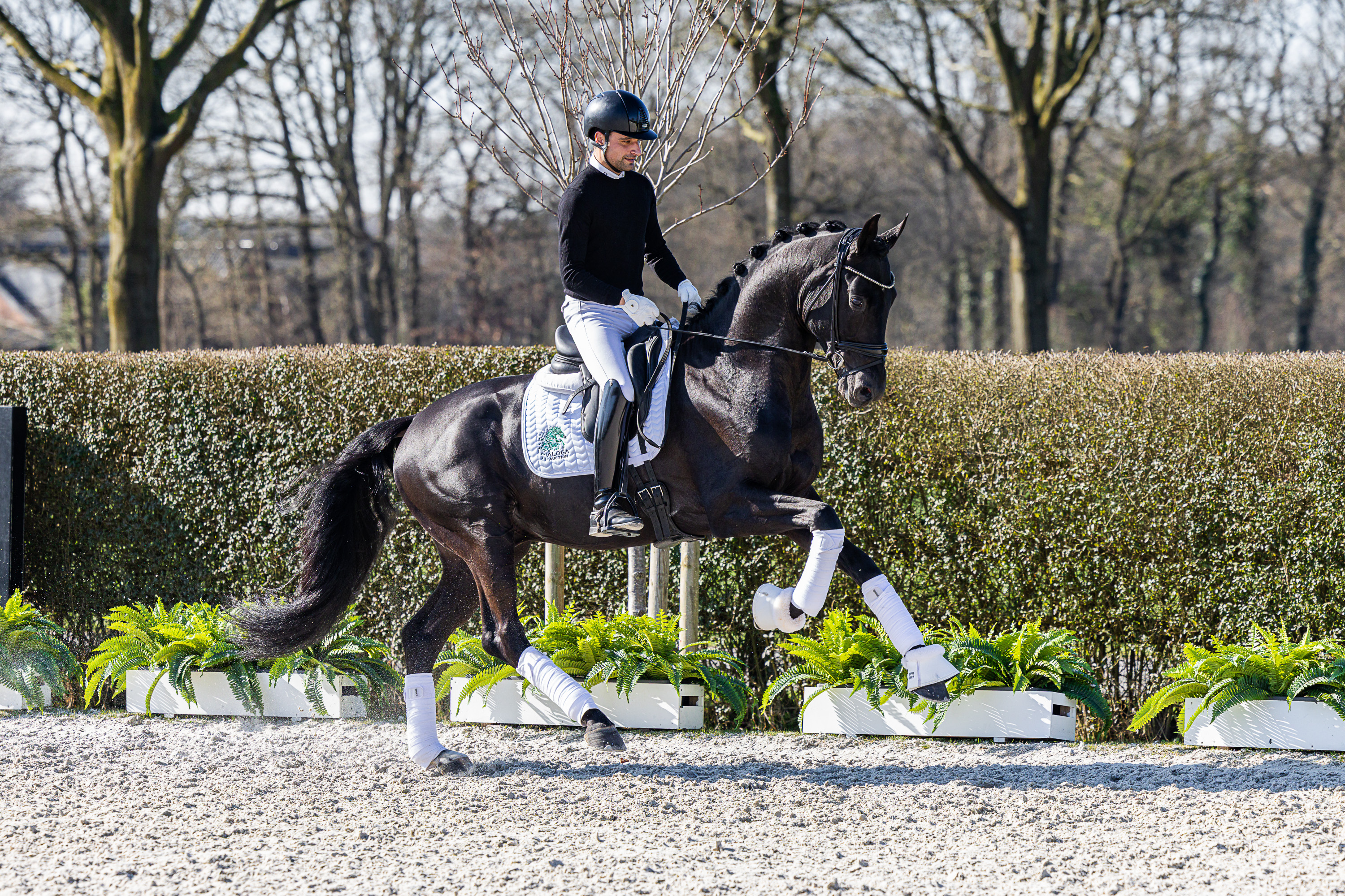 Beyond his spectacular movement, Fire Soul convinces with an exceptionally pleasant ride and a confident, harmonious way of going under saddle. His elegant silhouette, noble black coat and charismatic presence give him an unforgettable appearance.