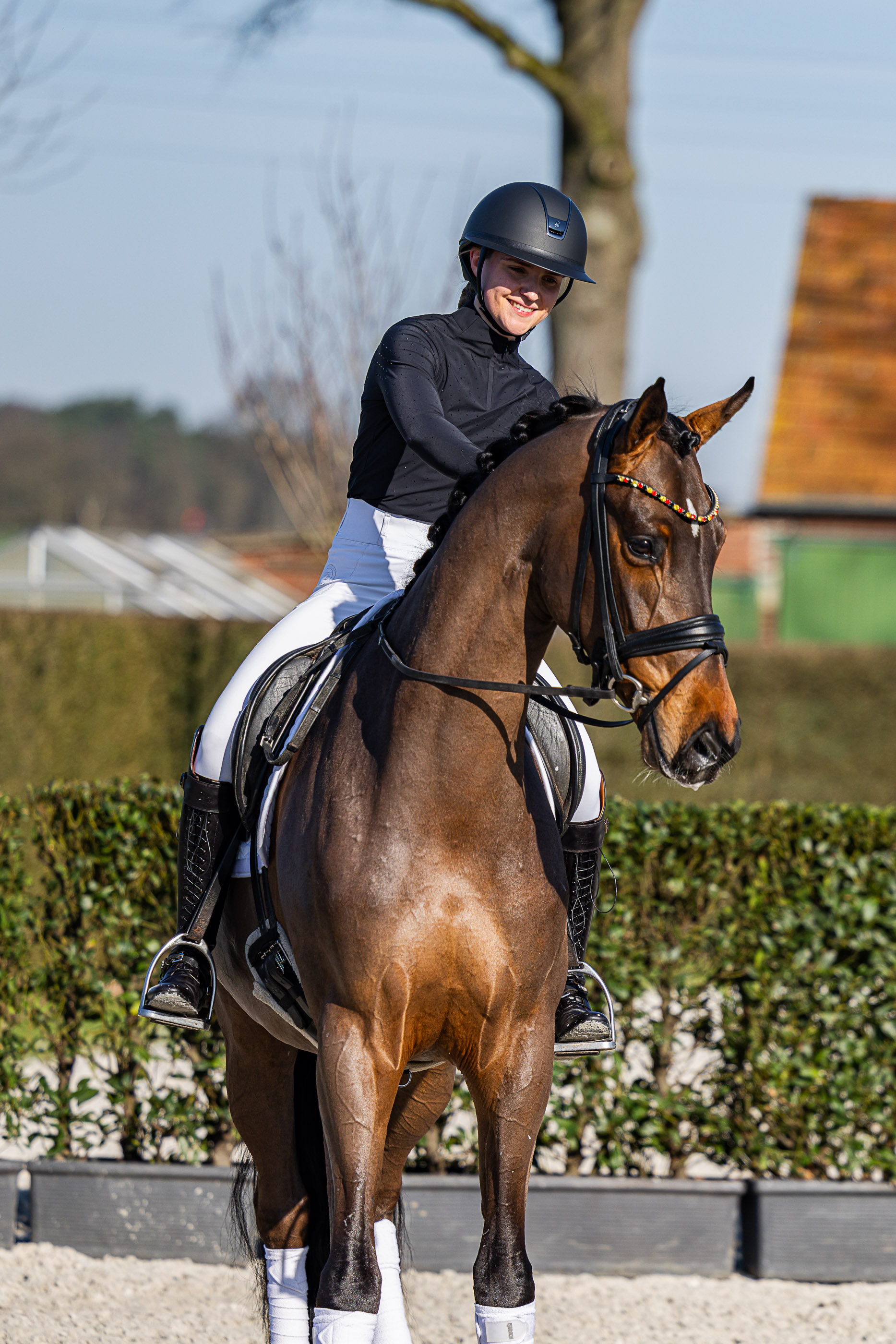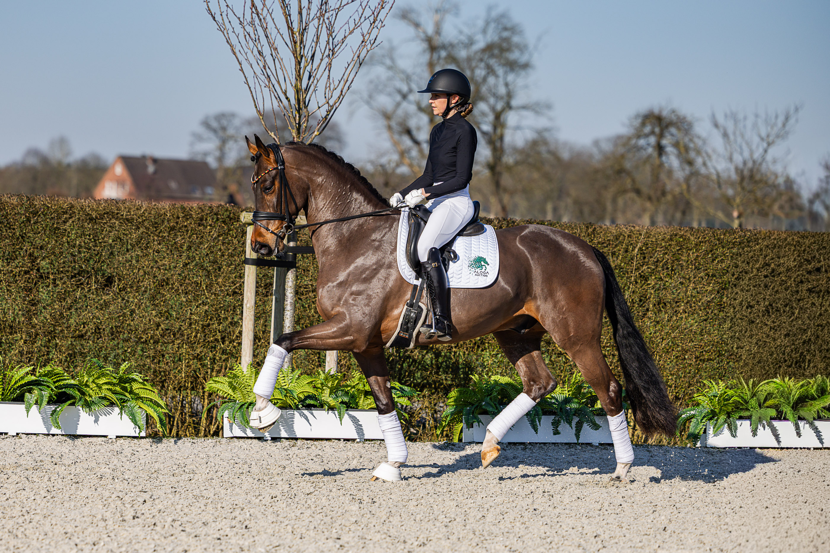 Valsero is a young dressage horse who embodies athleticism, presence and exceptional promise for the future. This four year old gelding immediately impresses with his natural balance, expressive movement and remarkable willingness to perform. He is a son of the premium stallion Venido, successful up to Prix St. Georges level, and out of the mare Fortuna by Finnigan. Through this dam line he is closely related to the Grand Prix successful Don Lauris a pedigree clearly shaped by proven sport performance. Valsero particularly captivates in the trot. With extraordinary shoulder freedom, impressive elasticity and dynamic engagement from the hind leg, his movement already reveals the qualities required for future collected work. His canter is powerful, uphill and full of scope, while the walk remains pure in rhythm with generous overtrack and relaxation. Equally remarkable is his attitude towards work. Valsero approaches every task with motivation and focus, creating a feeling of harmony and partnership for his rider. His natural talent combined with his positive mentality makes him an exciting prospect for the sport. Valsero is a horse whose quality speaks for itself, a future partner for riders aiming for the highest levels of dressage competition.